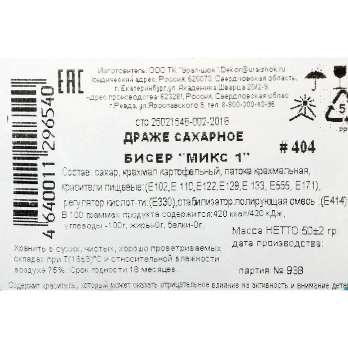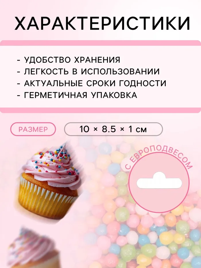 Посыпка кондитерская с мягким центром «Бисер» цветной, микс, 50 г — Характеристики