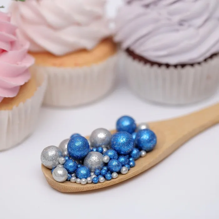 Посыпка кондитерская с мягким центром «Блеск»: синяя, серебряная, 50 г