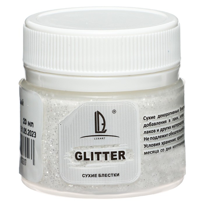 Декоративные блёстки LUXART LuxGlitter (сухие), 20 мл, размер 0.2 мм, белые