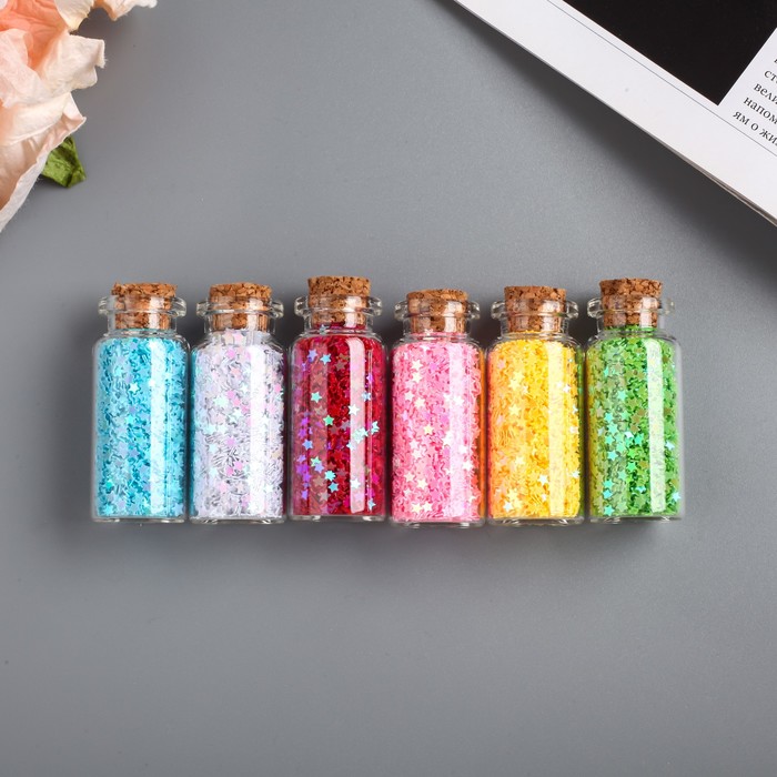 Глиттер в баночке с пробкой «Яркие звёздочки», (набор 6 шт.) 6 г=1 баночка, 13×5 см