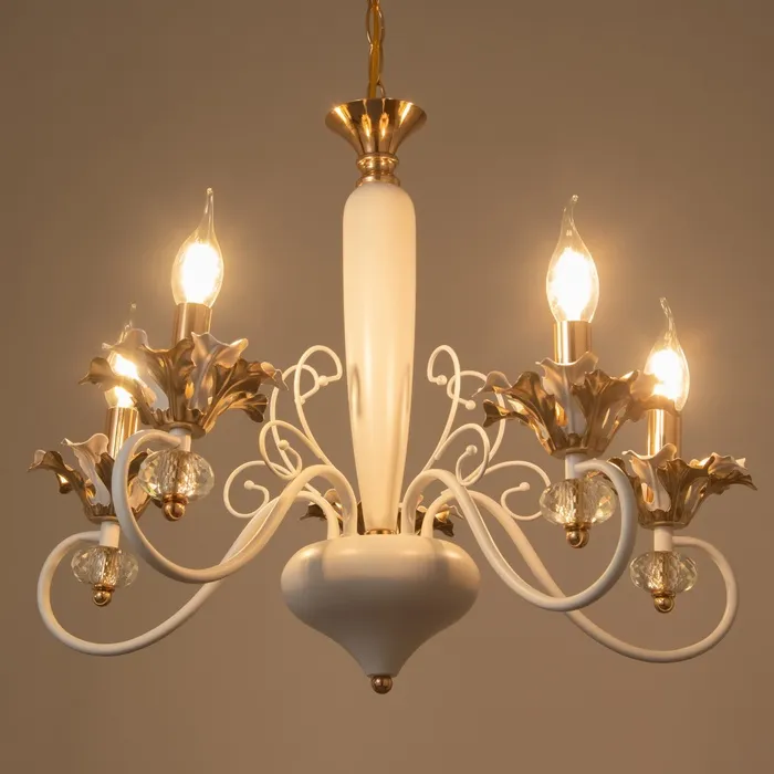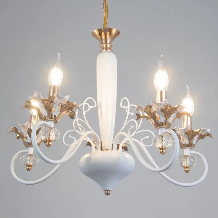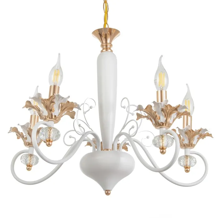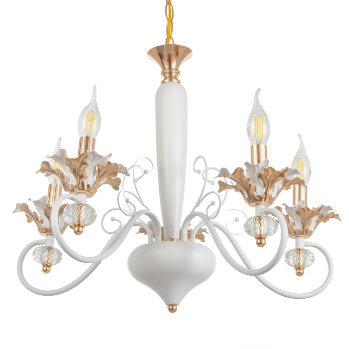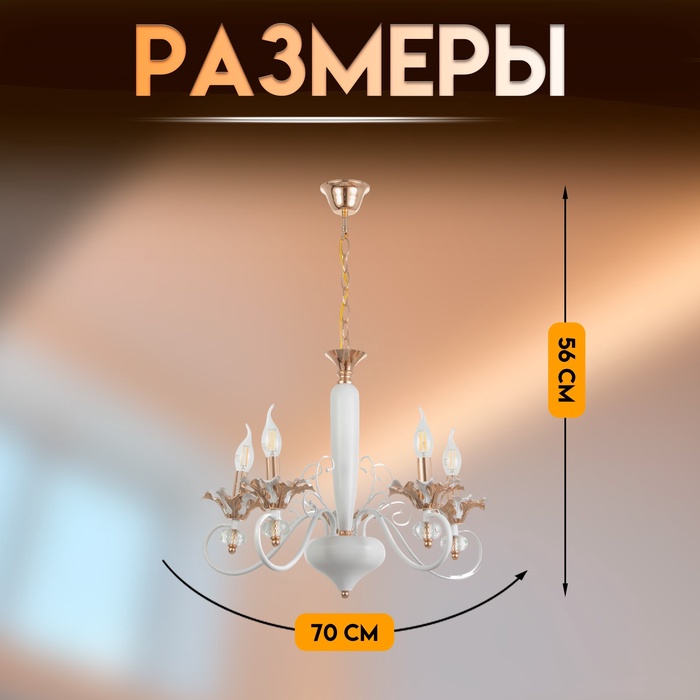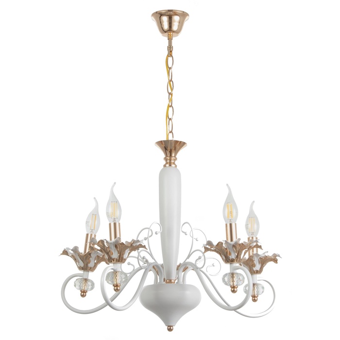 Потолочный светильник на цепи BayerLux «Лиолет», 5×Е14, 40 Вт, бело-золотой, 56×70×56 см — Характеристики