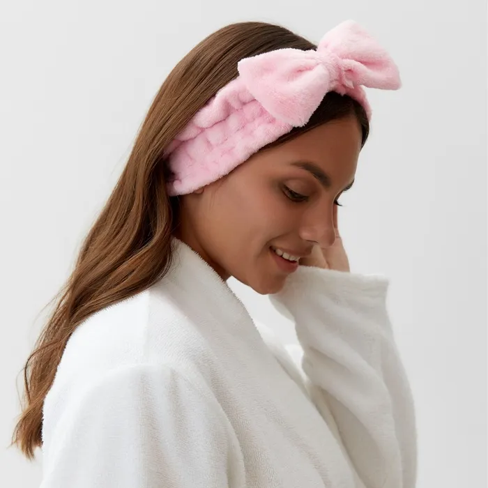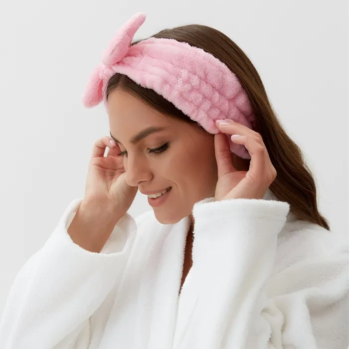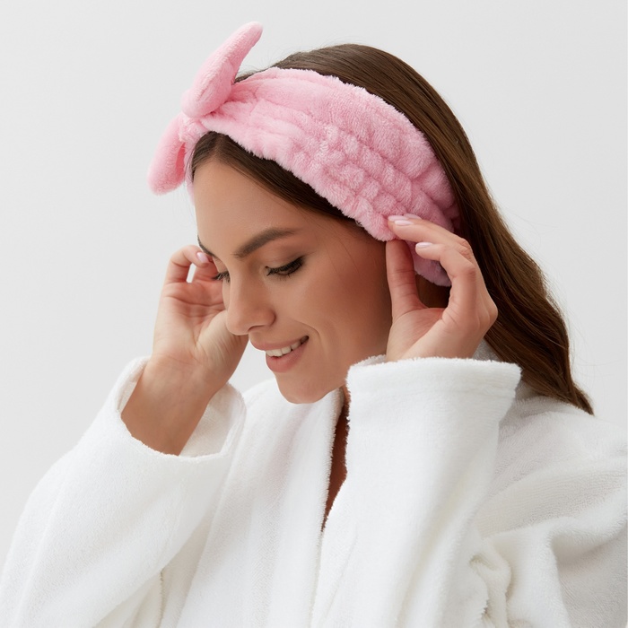 Повязка для умывания из микрофибры Доляна «Бантик», розовая — Характеристики