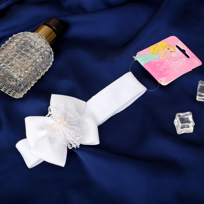 Повязка для волос «Бант», цветок кружево, 3×17 см, белая