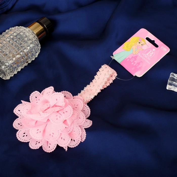 Повязка для волос «Кружева», пион, 15×1.8 см, розовая