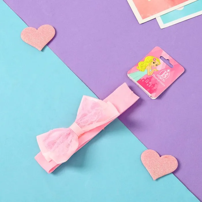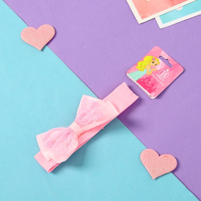 Повязка для волос «Бант», полоски, 3×17 см, розовая