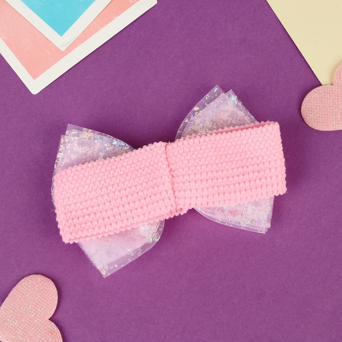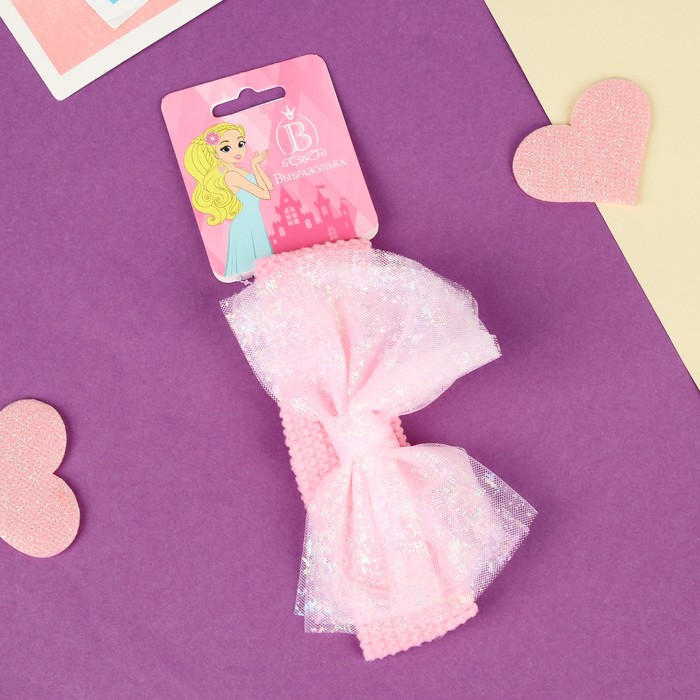 Повязка для волос «Выбражулька», прозрачный бант блеск, 16×3 см, розовая — Характеристики