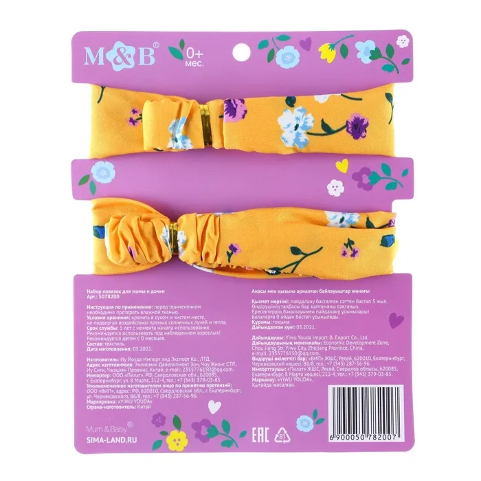 Повязка на голову для мамы и дочки M&B «Family look» 2 шт., МИКС — Характеристики