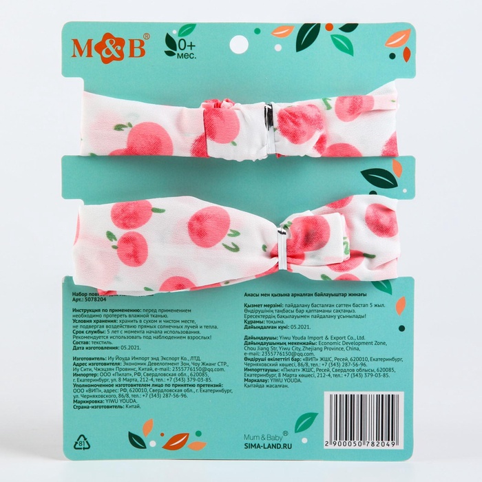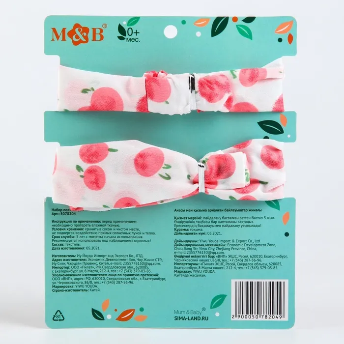 Повязка на голову для мамы и дочки M&B «Family look: ягодки», 2 шт., розовый — Характеристики