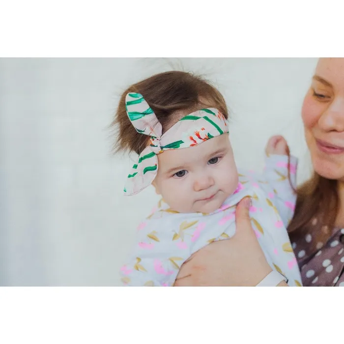 Обхват головы повязки для малышки: минимум - 43 см, максимум - 56 см Обхват повязки для взрослого: минимум - 53 максимум - 67 см