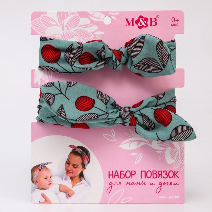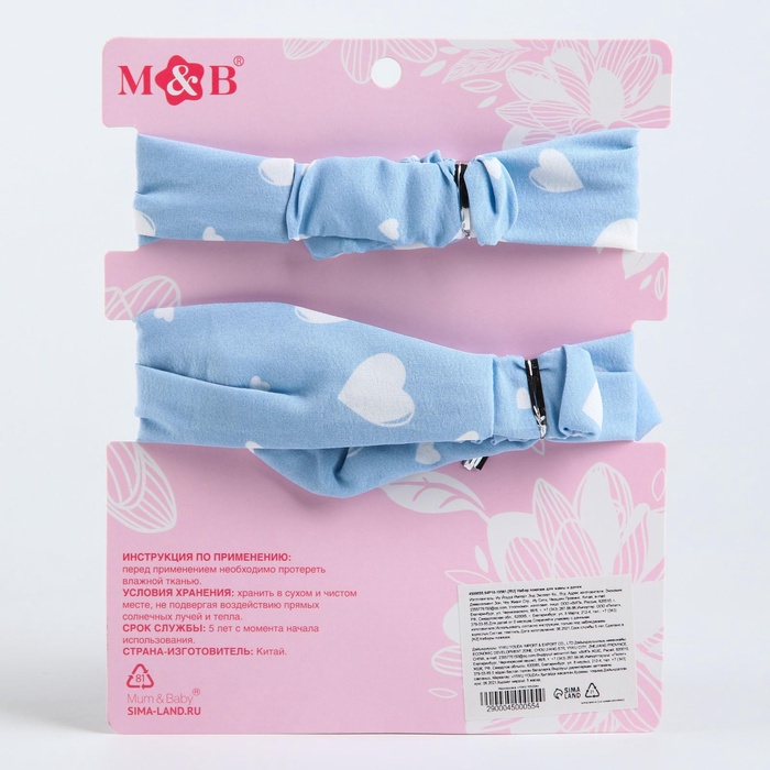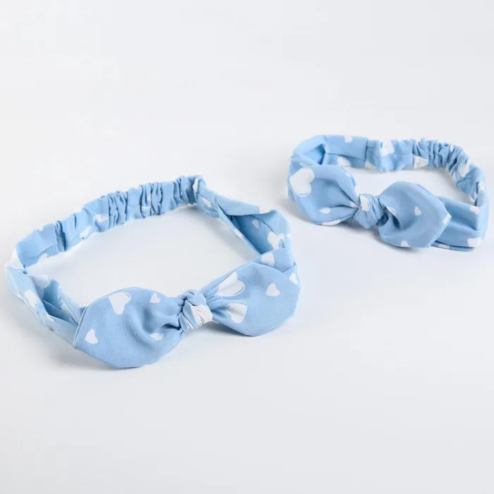 Повязка на голову для мамы и дочки M&B «Family look: сердечки» 2 шт., голубой — Характеристики