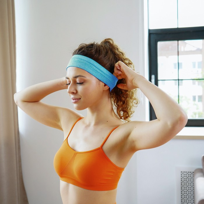 Повязка используется при интенсивных тренировках. Комфортно сидит на голове и не сползает благодаря силиконовым вставкам на внутренней стороне. Впитывает пот и на даёт ему попадать в глаза.