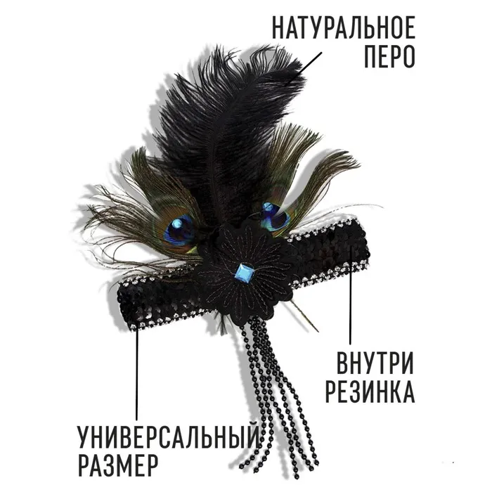 Повязка поможет создать уникальный образ для любой вечеринки. А перо подчеркнёт уникальность вашего образа и придаст ему изюминку.