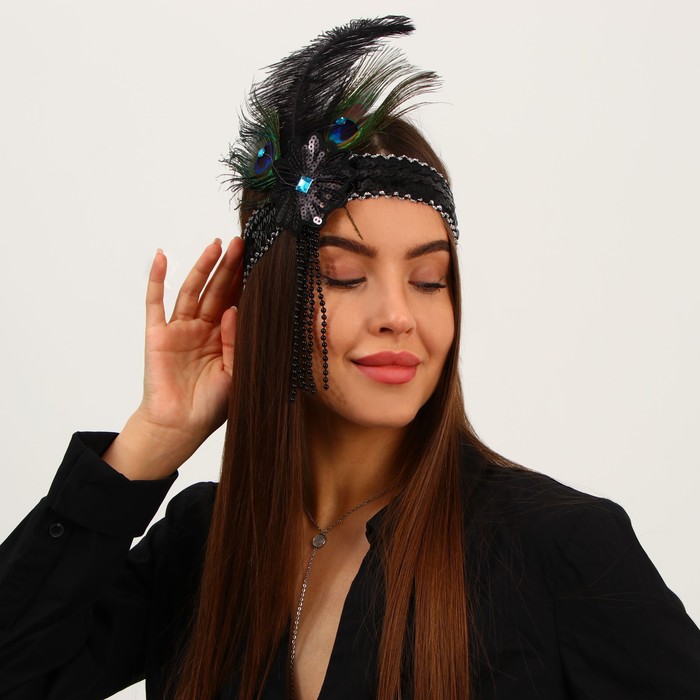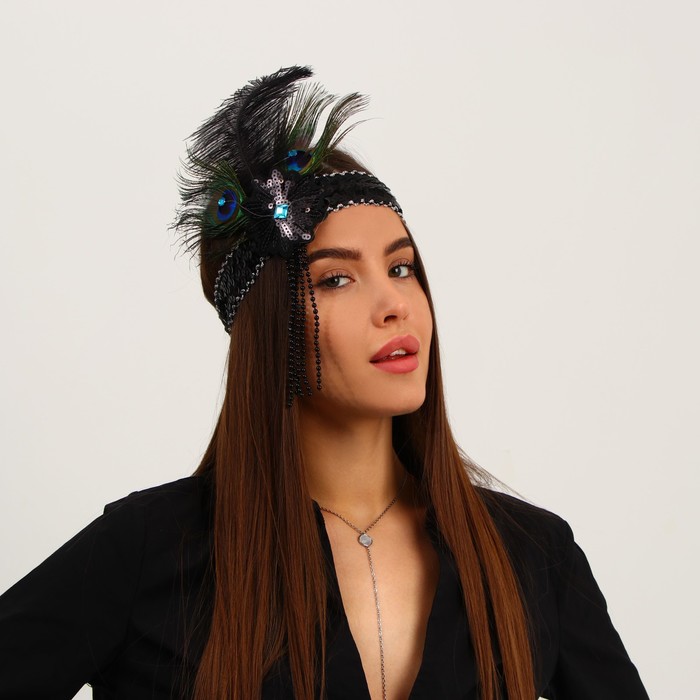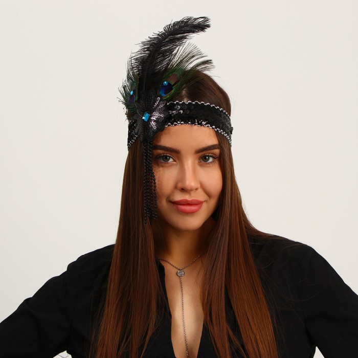 Повязка на голову с пером карнавальная, чёрная — Характеристики