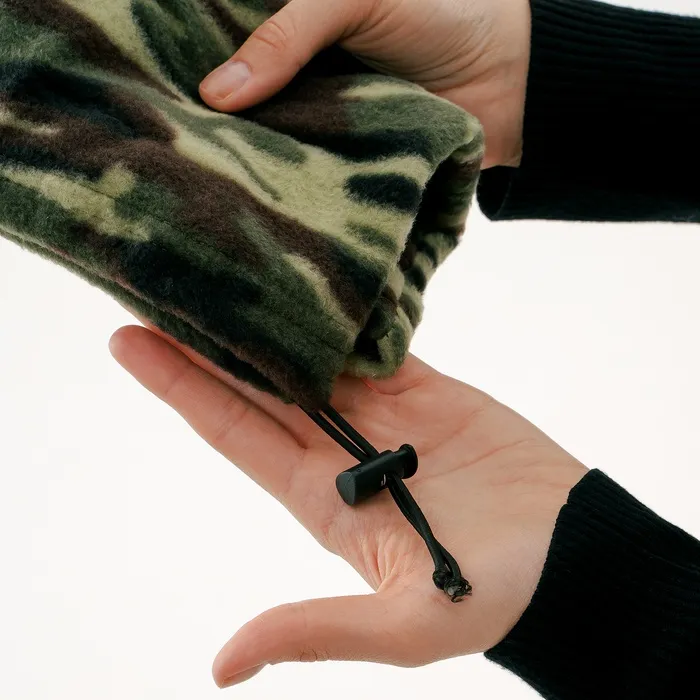 Повязка-труба — универсальный аксессуар. Изделие из флиса защищает от дождя и снега, отталкивает влагу. Повязку можно носить разными способами в зависимости от погоды и настроения. Например, в качестве объёмного шарфа, спортивной шапки или шейной повязки. В морозный день прикройте нижнюю половину лица и зафиксируйте аксессуар с помощью шнура. Аксессуар быстро сохнет и компенсирует потерю тепла.