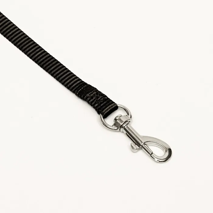 Металлический карабин позволяет легко и быстро пристегнуть поводок к ошейнику собаки.