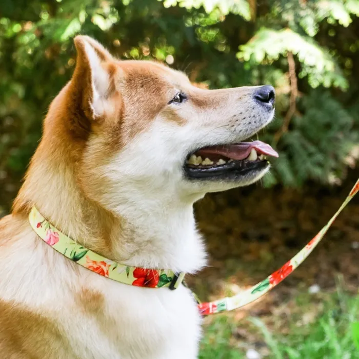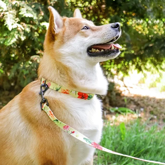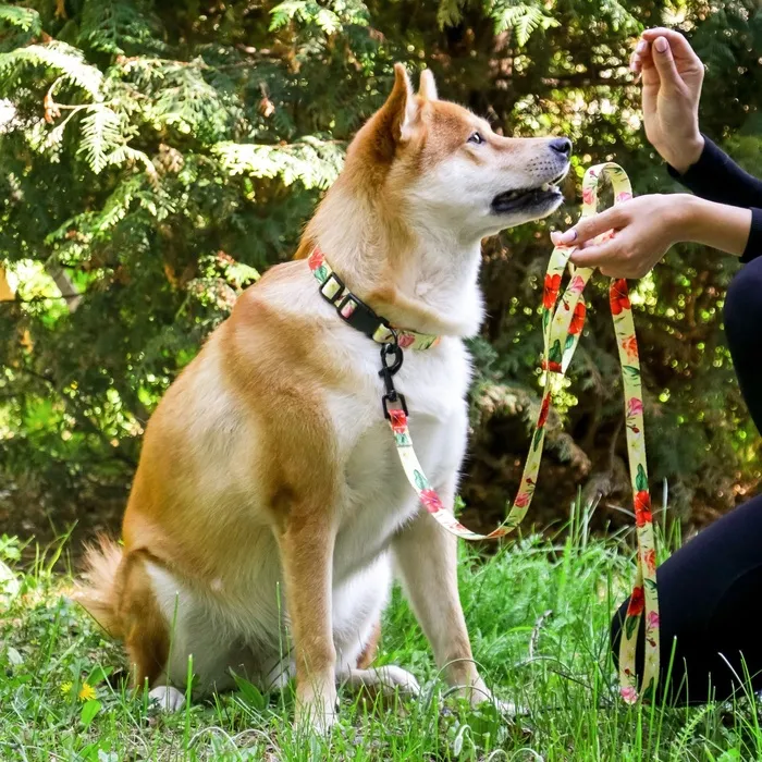 Набор для собак сделан из капрона и оснащён надёжной пластиковой застёжкой фастекс, что позволяет быстро надеть/снять ошейник. Устойчив к влажности и перепадам температуры. Ошейник практичен в применении, при загрязнении легко очищается. Поводок очень прочный, крепится к ошейнику металлическим карабином.