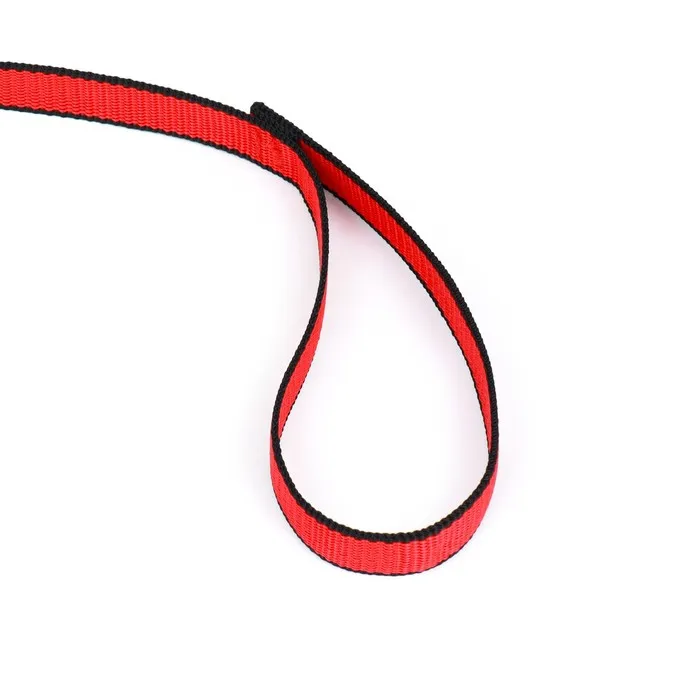 Он имеет длину 2 м х 2 см, представлен в красно- чёрном цвете. Оснащен карабином на одном конце, чтобы легко присоединить его к ошейнику или наморднику животного.