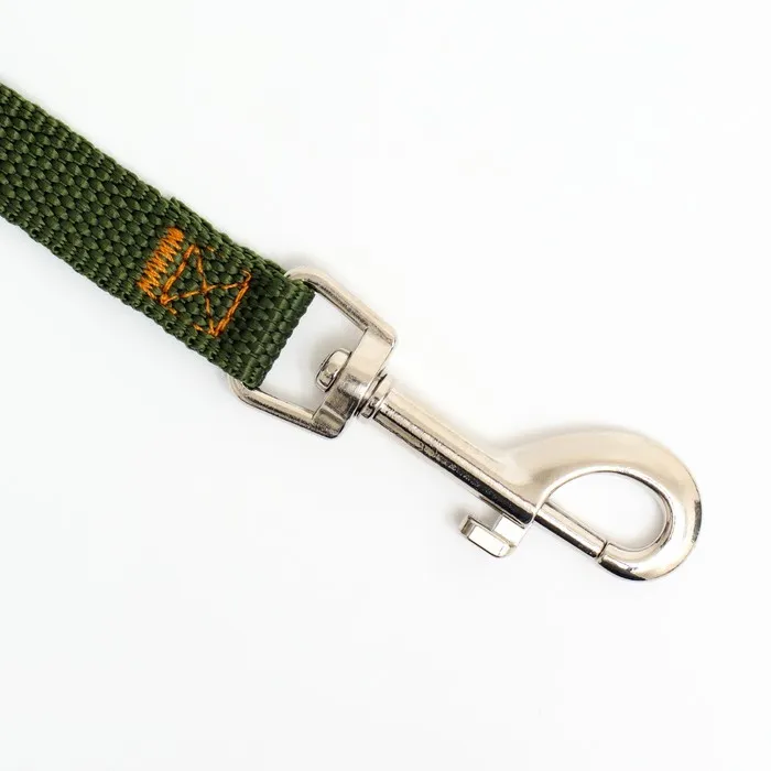 Металлический карабин позволяет легко и быстро пристегнуть поводок к ошейнику собаки.