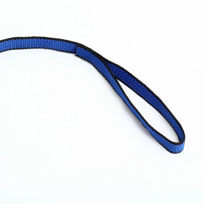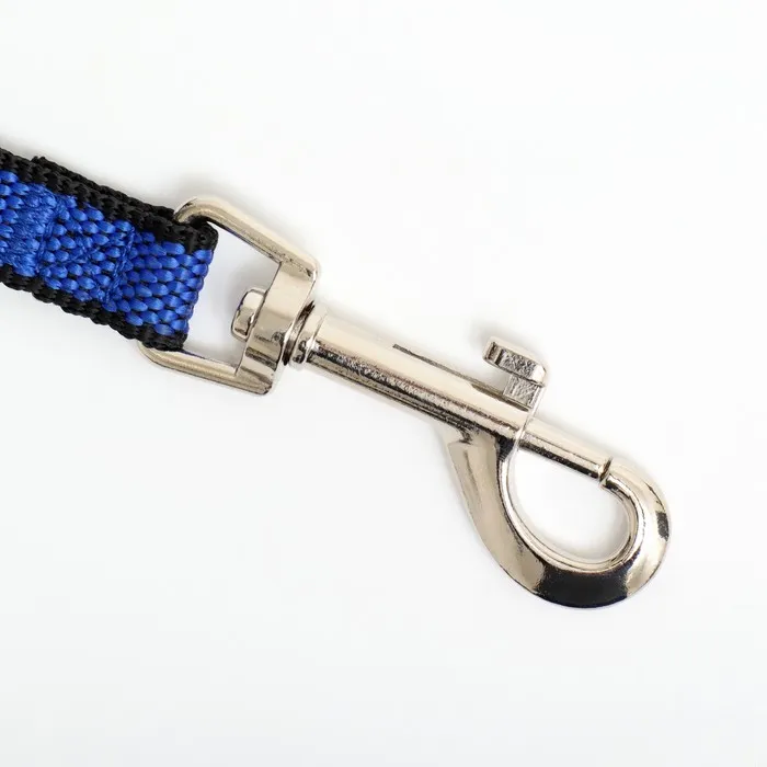 Он имеет длину 5 м х 1,5 см, представлен в сине-чёрном цвете. Оснащен карабином на одном конце, чтобы легко присоединить его к ошейнику или наморднику животного.