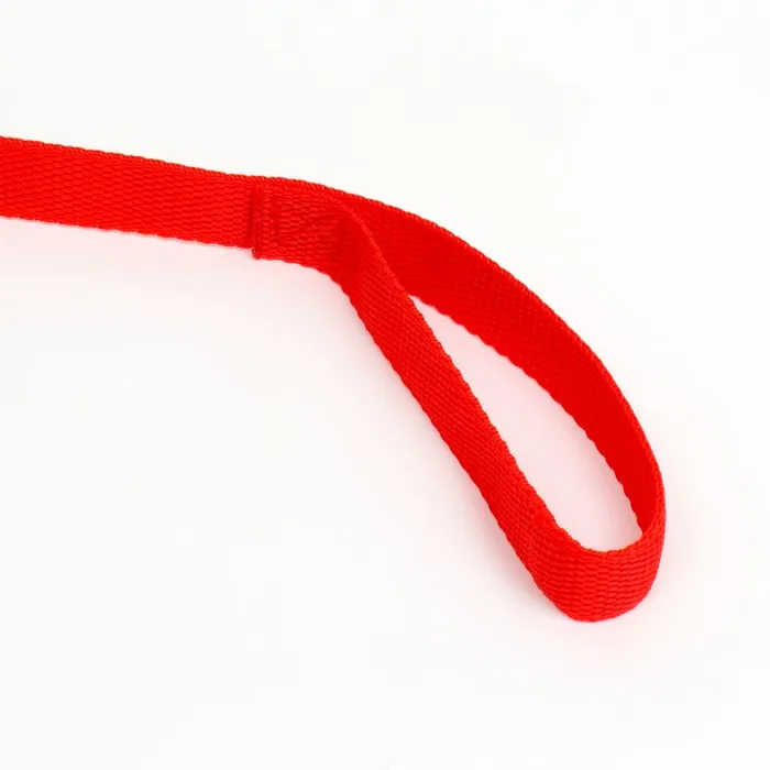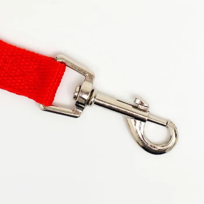 Он имеет длину 5 м х 2 см, представлен в красном цвете. Оснащен карабином на одном конце, чтобы легко присоединить его к ошейнику или наморднику животного.