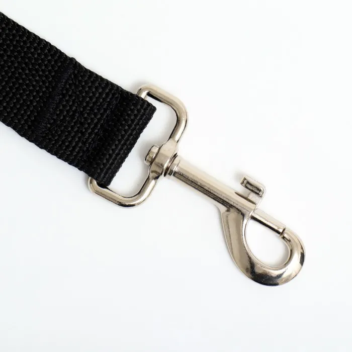 Металлический карабин позволяет легко и быстро пристегнуть поводок к ошейнику собаки.
