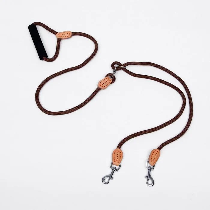 Поводок для двух собак имеет диаметр 8 мм и оснащен своркой, что позволяет удобно контролировать двух питомцев одновременно.