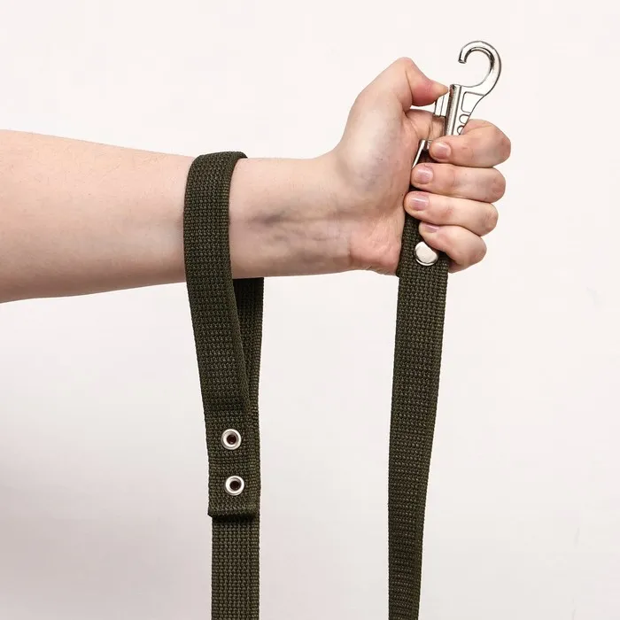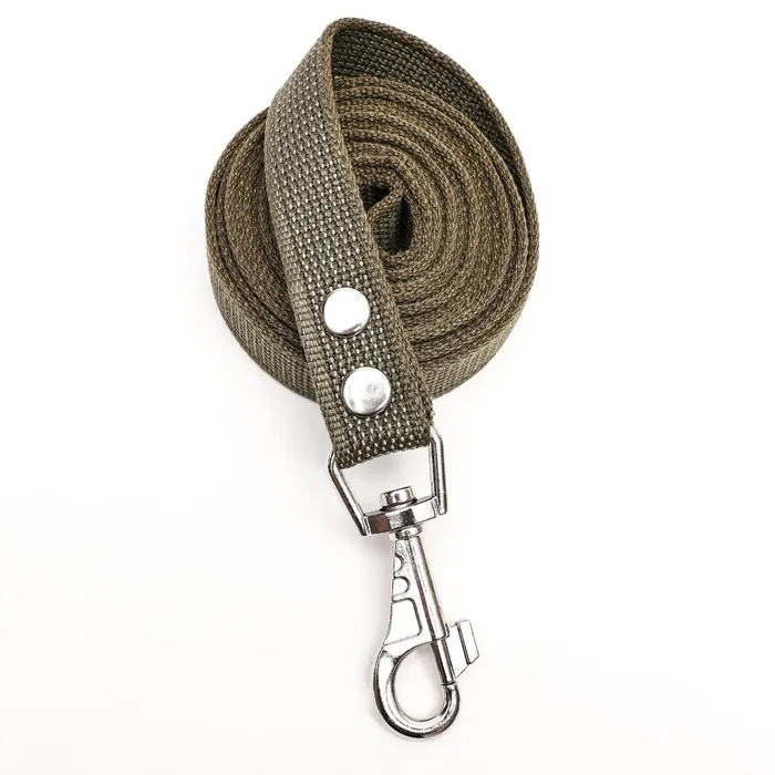Практичный и надежный поводок из брезента. Поводок применяется для прогулок и дрессировки собаки. Он отличается высокой прочностью и долговечностью. Изделие снабжено надежным карабином из высококачественной стали, а специальный переходник позволяет карабину крутиться вокруг своей оси, предотвращая запутывание. На поводке имеется петля, которая одевается на руку для более удобного использования.
