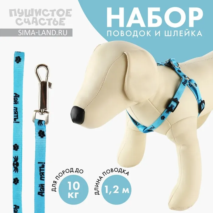 В стильный прогулочный комплект для кошек входит лёгкая текстильная шлейка, прочный поводок, крепкий карабин. Шлейка регулируется, поводок крепится к металлическому кольцу с помощью карабина. Ремни шлейки не давят на грудь и шею, равномерно распределяют нагрузку. Подходит для животных до 10 кг.