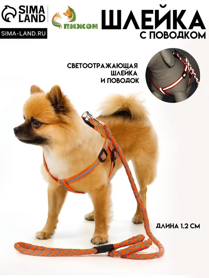 В стильный прогулочный комплект для собак и кошек входит лёгкая шлейка, прочный поводок, крепкий карабин. Ремни шлейки не давят на грудь и шею, равномерно распределяют нагрузку. Подходит для животных до 10 кг.