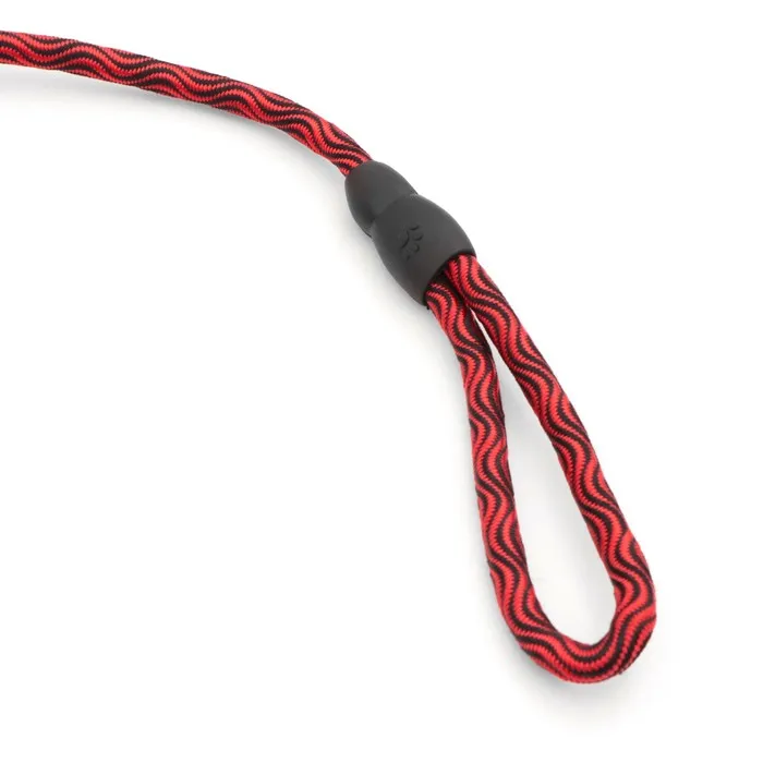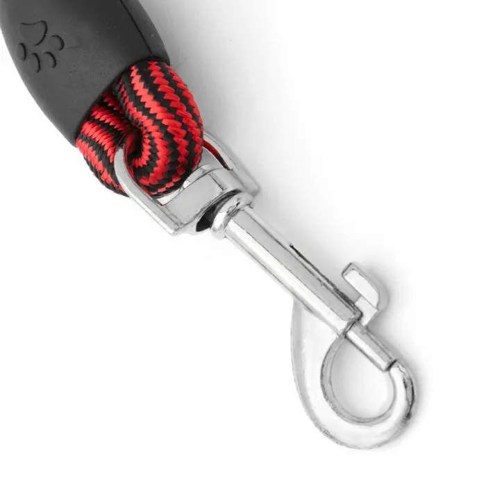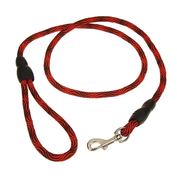 Круглая форма поводка позволяет удобно держать его в руке, а металлический карабин обеспечивает надежное крепление к ошейнику собаки.