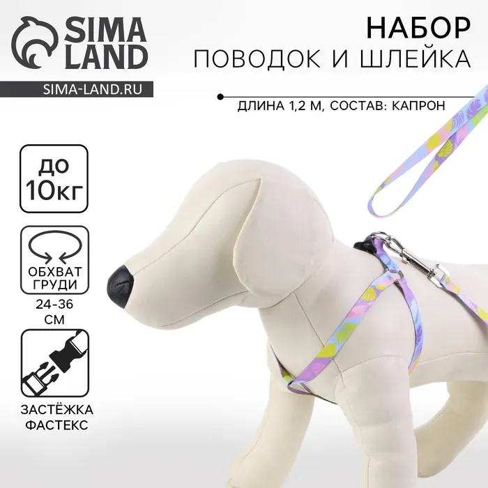 Поводок «Листья» 120×1 см, шлейка 24-36 см — Характеристики