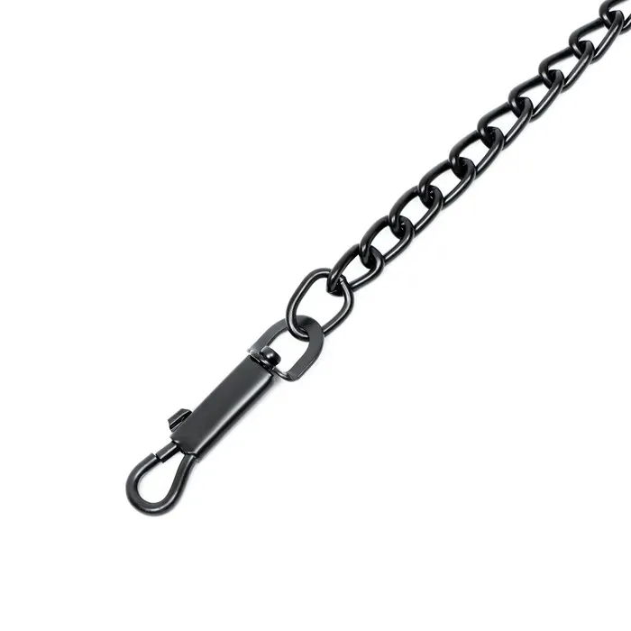 Поводок должен быть прочным и надежным. Металлический поводок полностью соответствует этим требованиям, плюс ко всему это красивый и износостойкий аксессуар. Поводок состоит из хромированной цепочки и мягкой нейлоновой ручки. Ручка прошита армированной нитью, удобно располагается в ладони и не натирает при натяжении. Поводок оснащен усиленным карабином. Длина поводка: 120 см; Ширина: