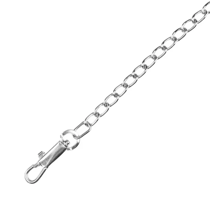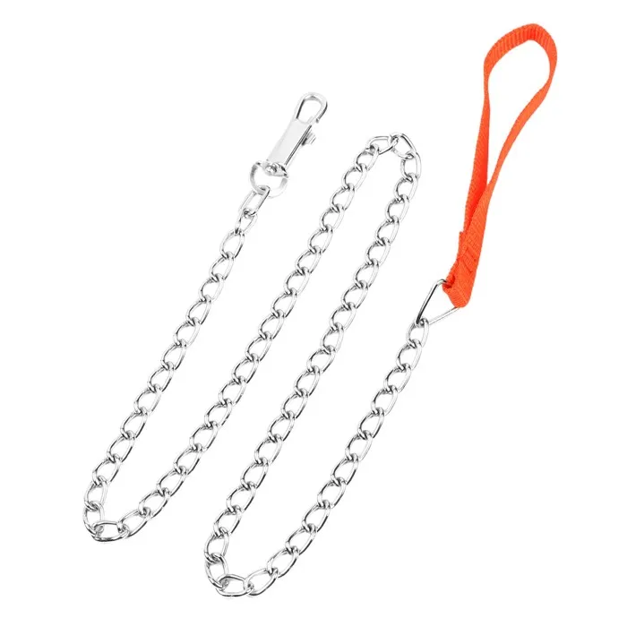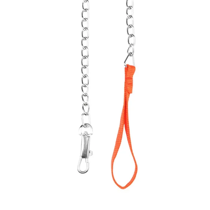 Поводок состоит из хромированной цепочки и мягкой нейлоновой ручки.