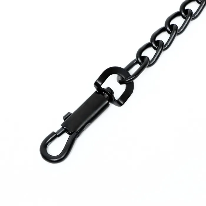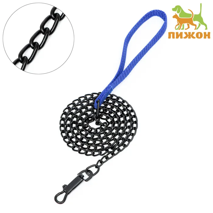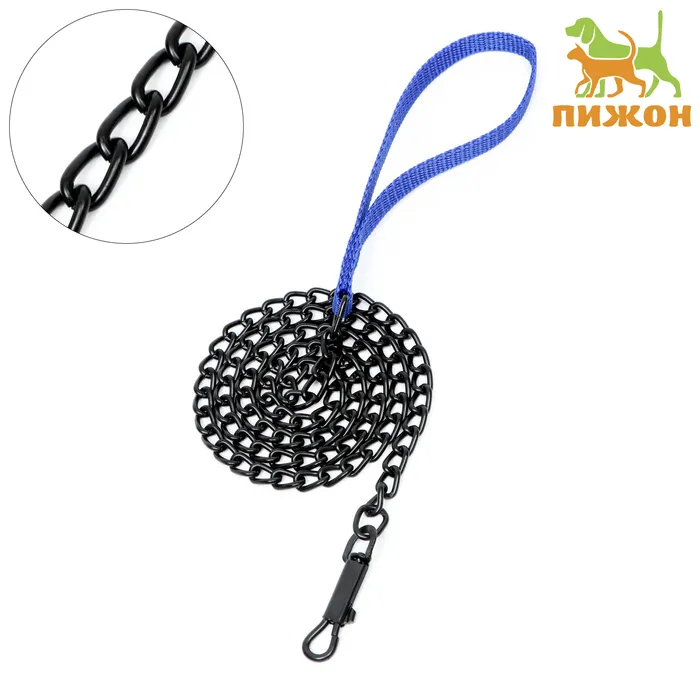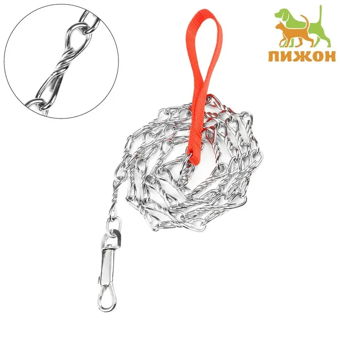Поводок должен быть прочным и надежным. Металлический поводок полностью соответствует этим требованиям, плюс ко всему это красивый и износостойкий аксессуар. Поводок состоит из хромированной цепочки и мягкой нейлоновой ручки. Ручка прошита армированной нитью, удобно располагается в ладони и не натирает при натяжении. Поводок оснащен усиленным карабином. Длина поводка: 120 см; Ширина: