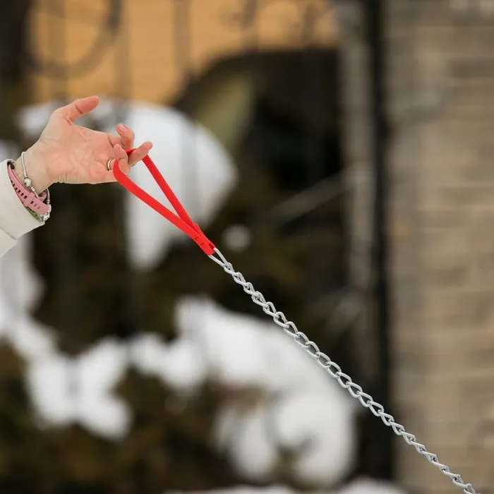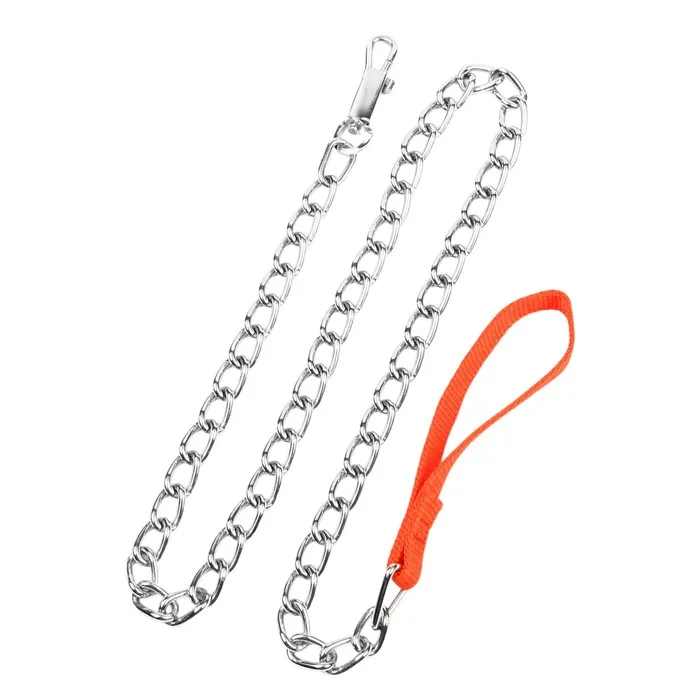 Поводок состоит из хромированной цепочки и мягкой нейлоновой ручки.