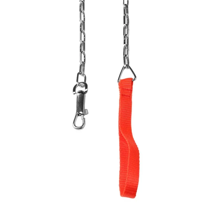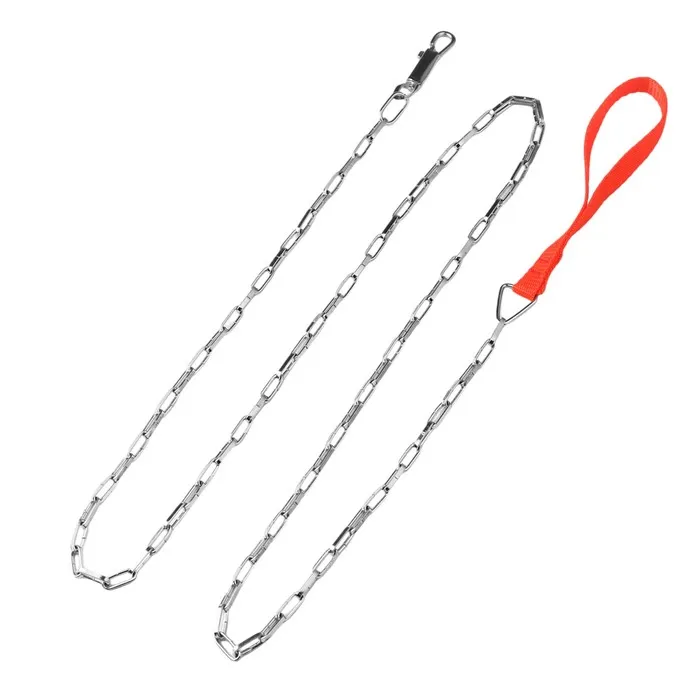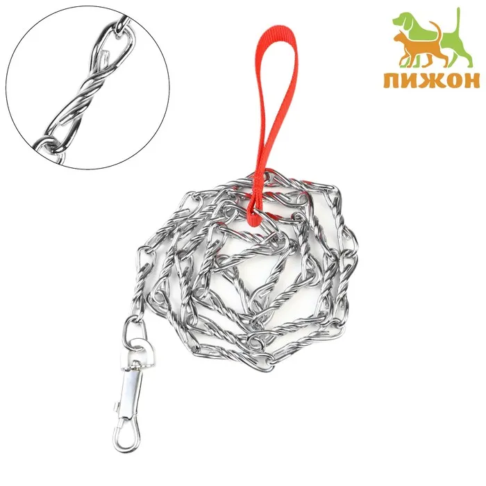 Поводок состоит из хромированной цепочки и мягкой нейлоновой ручки.