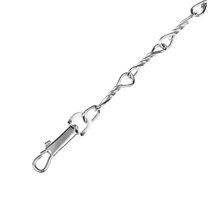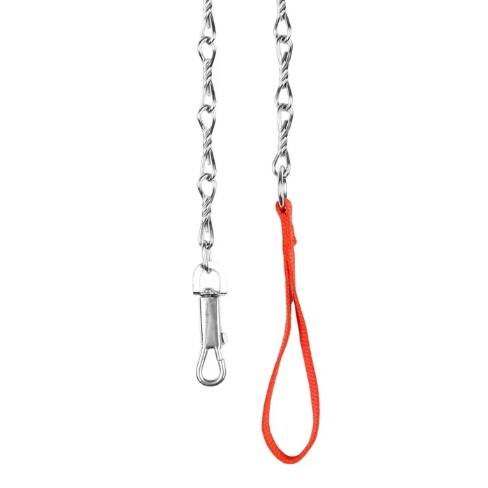 Поводок должен быть прочным и надежным. Металлический поводок полностью соответствует этим требованиям, плюс ко всему это красивый и износостойкий аксессуар. Поводок состоит из хромированной цепочки и мягкой нейлоновой ручки. Ручка прошита армированной нитью, удобно располагается в ладони и не натирает при натяжении. Поводок оснащен стальным карабином.
