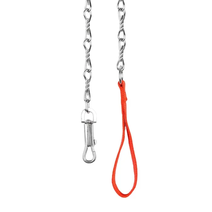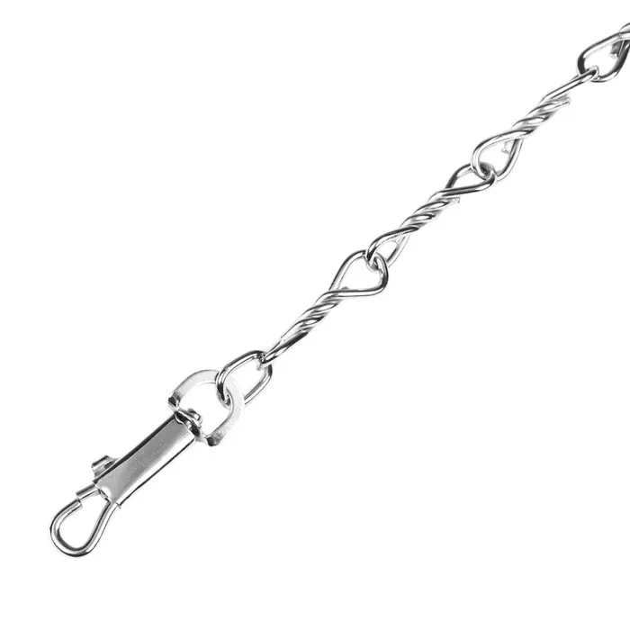 Поводок должен быть прочным и надежным. Металлический поводок полностью соответствует этим требованиям, плюс ко всему это красивый и износостойкий аксессуар. Поводок состоит из хромированной цепочки и мягкой нейлоновой ручки. Ручка прошита армированной нитью, удобно располагается в ладони и не натирает при натяжении. Поводок оснащен стальным карабином.