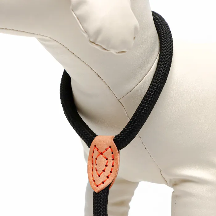 Поводок-удавка изготовлен из полиэстера, данный материал очень прочный. В свою очередь натуральная кожа придает поводку надежность, привлекательный внешний вид и устойчивость к истиранию при использовании поводка на протяжении продолжительного времени.