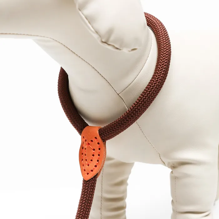 Поводок-удавка изготовлен из полиэстера, данный материал очень прочный. В свою очередь натуральная кожа придает поводку надежность, привлекательный внешний вид и устойчивость к истиранию при использовании поводка на протяжении продолжительного времени.