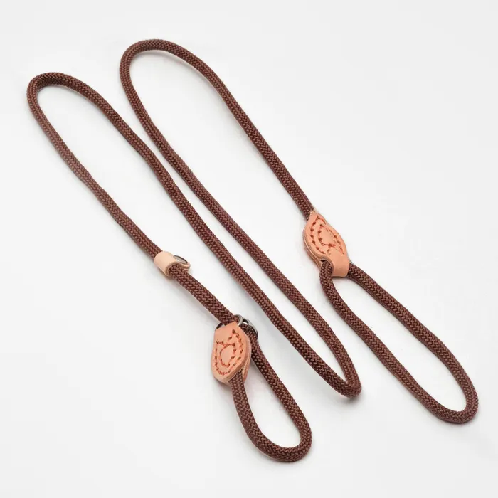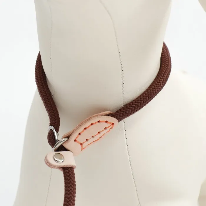 Поводок-удавка 150 см х 6 мм, полиэстер и натуральная кожа, коричневый
