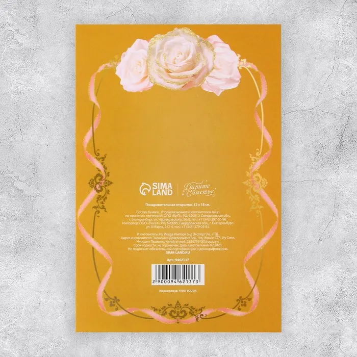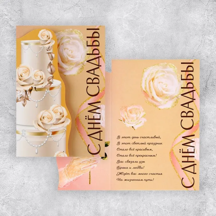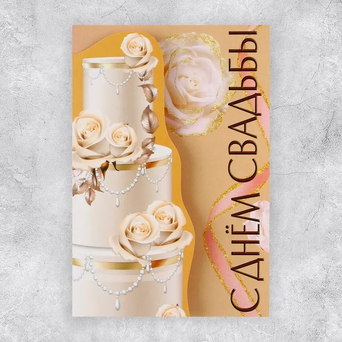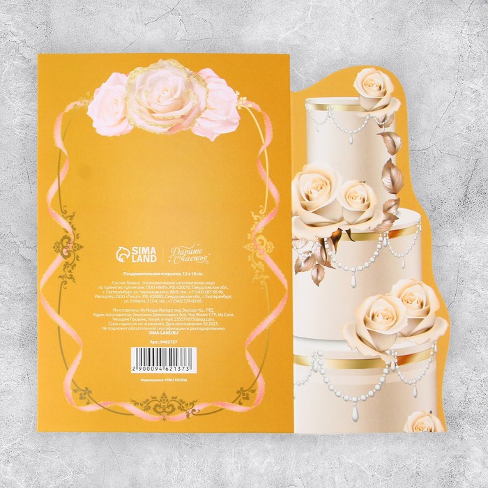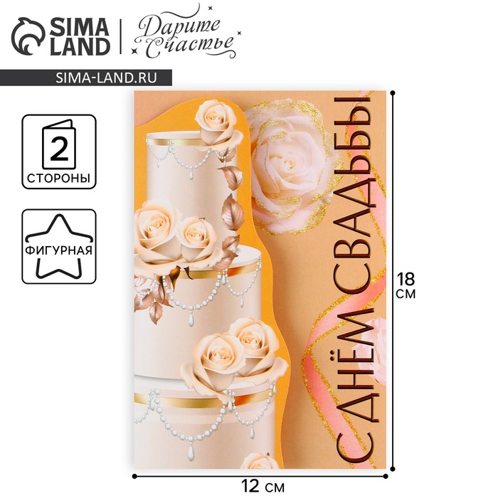 Поздравительная открытка «С Днём свадьбы», торт, 12 × 18 см — Характеристики