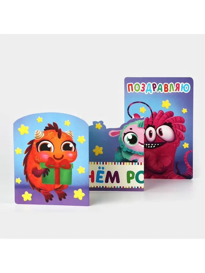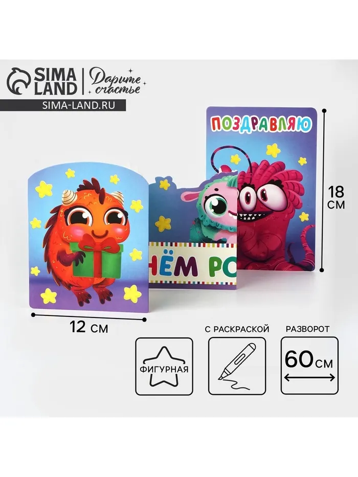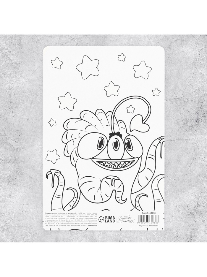 Поздравительная открытка с раскраской «Монстрики», 12×18 см — Характеристики