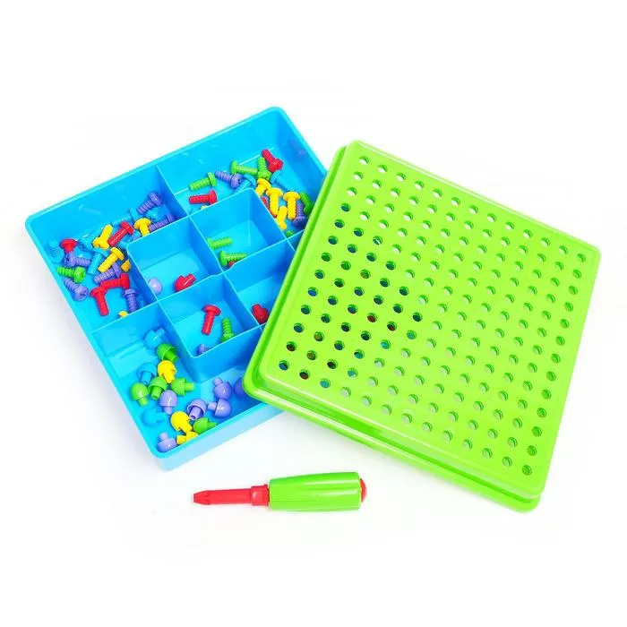 Задача малыша: вкручивать болтики и собирать картинки с помощью игровых полей и красочных фигурок.