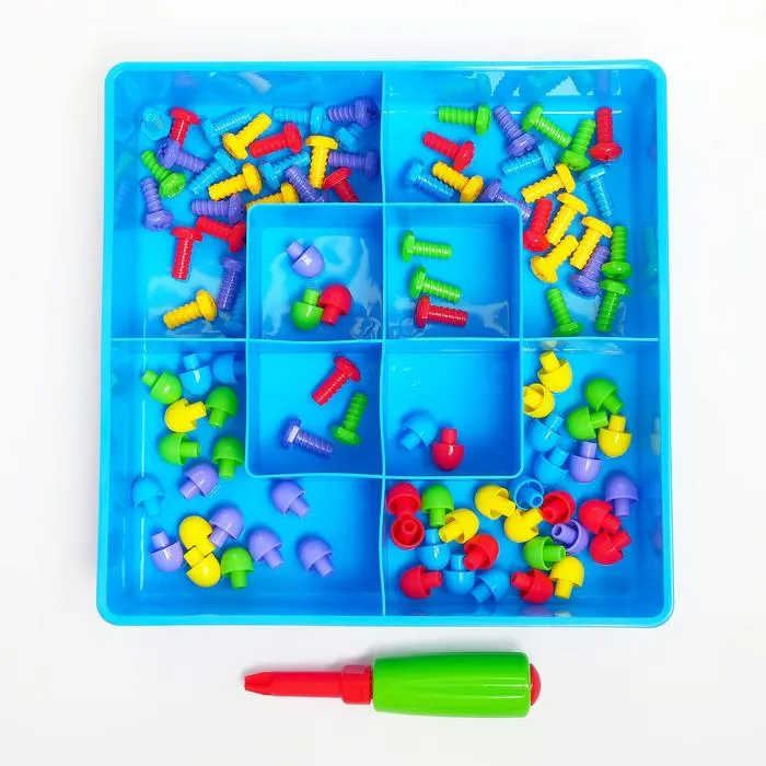 С помощью увлекательной игры малыш получит необходимые бытовые знания, научится закручивать шурупы, болты, шестерёнки, пуговки и придумывать новые конструкции.