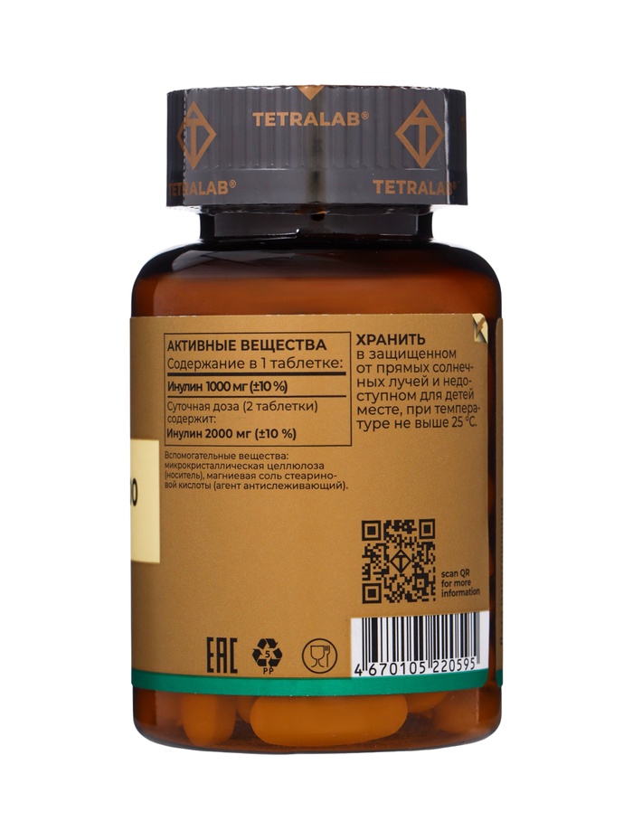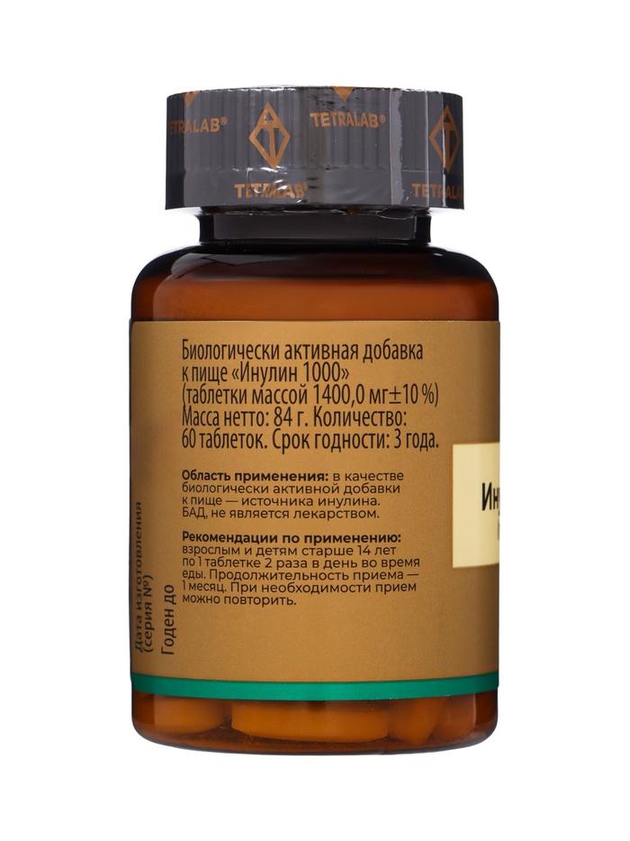 Пребиотик Инулин TETRALAB, улучшение работы кишечника и пищеварения, 1000 мг, 60 таблеток — Характеристики