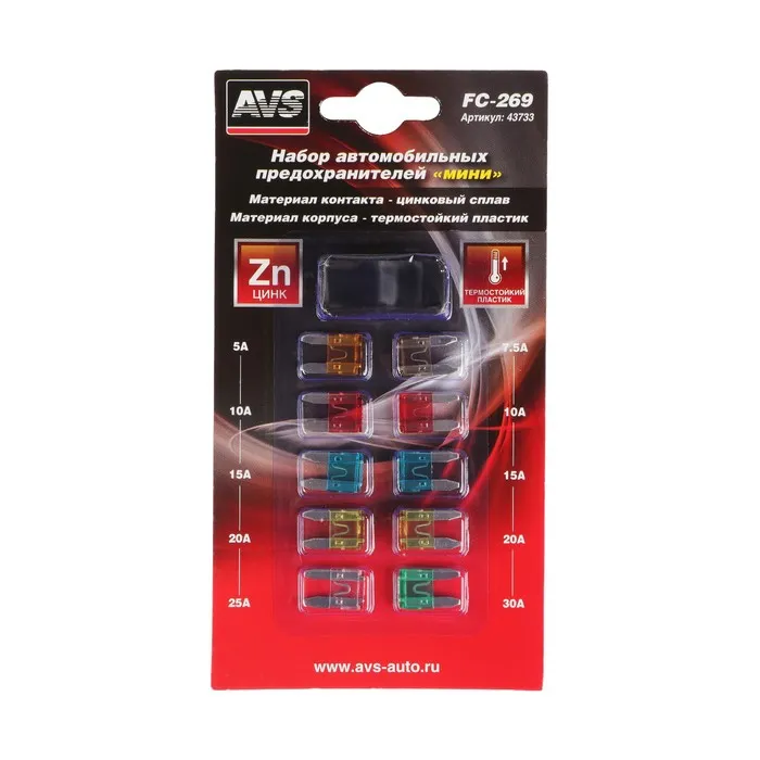 Предохранители AVS FC-269, «мини», 5-30 А, набор 10 шт.