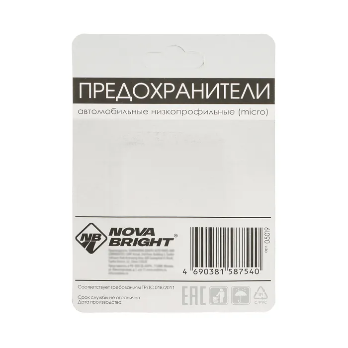 Предохранители флажковые Nova Bright Micro, низкие, набор 10 шт. — Характеристики