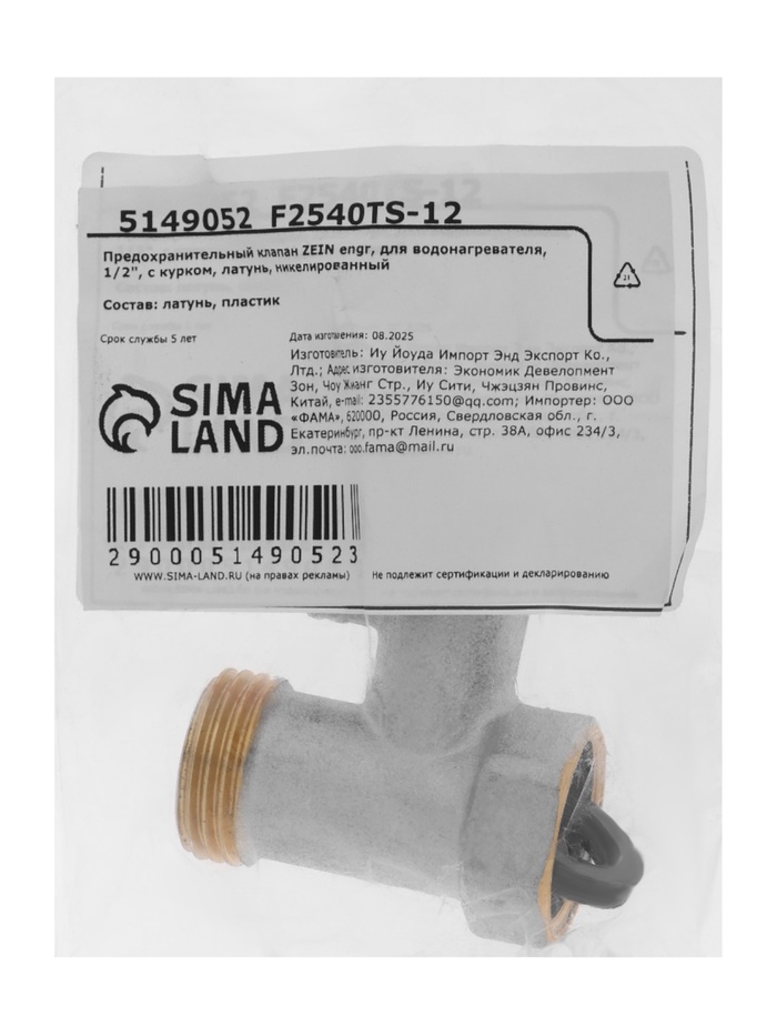 Предохранительный клапан ZEIN engr, для водонагревателя,1/2", с курком, латунь, никелированный — Характеристики