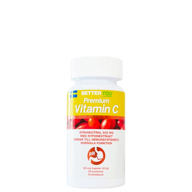 Витамин С премиум-класса от Better You высокодозирован, кислотно-нейтрален и дополнен экстрактом шиповника — высококачественным продуктом с витамином С.